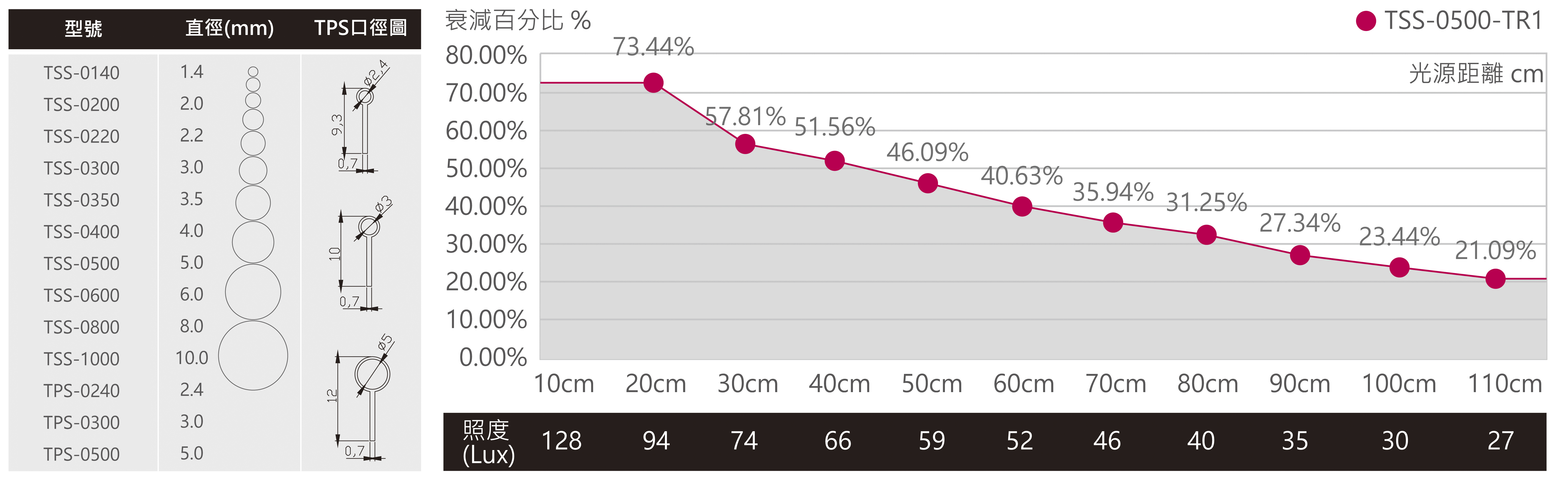 TSS & TPS 光纖衰減值折線圖 (以5mm 光纖採樣)